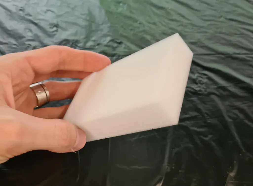 Power Sponges can actually be used dry, but adding a little water to the sponge will help it absorb dirt more easily, much like wetting a towel before wiping down counters. After you wet the eraser, squeeze out any excess water, just like you would with a regular sponge and then scrub the desired area.