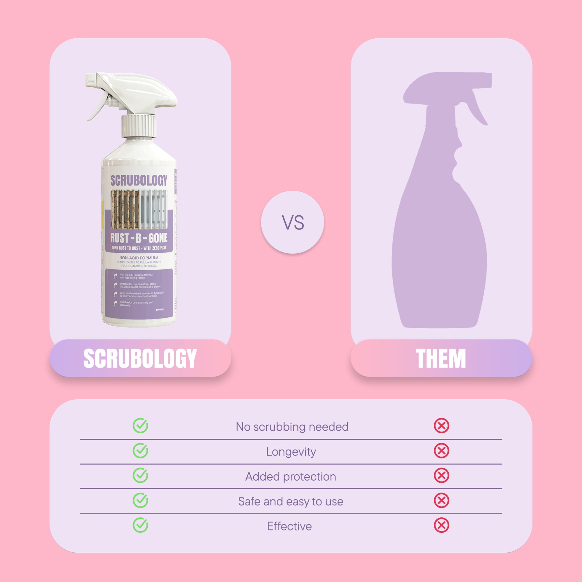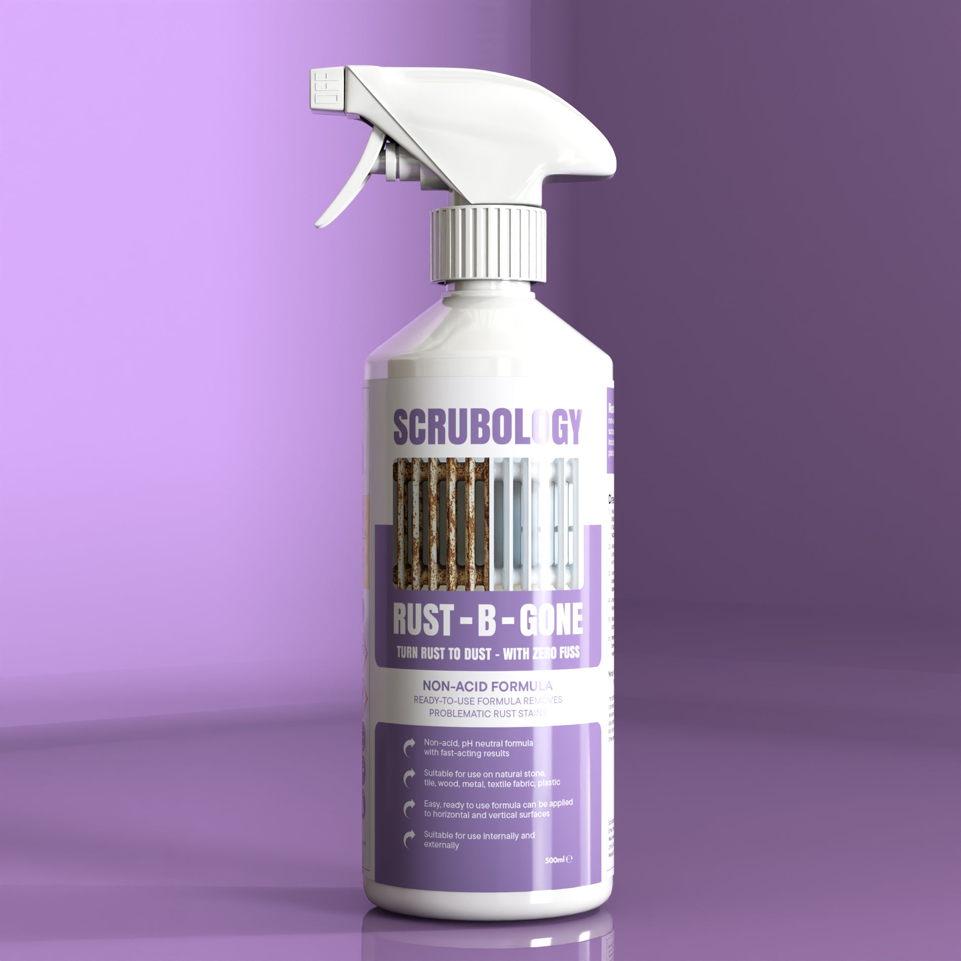 Rust-B-Gone Spray is a ready-to-use, non-acid rust remover spray suitable for use on any surfaces suffering from rust staining or spotting including stone, tile, wood, metal, textile fabric and plastic.